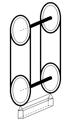 Also: Es gibt zwei Achsen, oben und unten. Ihre Länge beträgt etwas mehr als 1 m. Natürlich sind sie irgendwo/-wie nach "hinten" gelagert (das ist im Bild nicht zu sehen; Zufahrtsgleis und Antrieb habe ich der besseren Übersichtlichkeit wegen ebenfalls nicht eingzeichnet). Sie tragen jeweils links und rechts ein Zahn-/Kettenrad mit ca. 18cm Durchmesser; die Räder sitzen fest auf der Achse. Über die Kettenräder laufen synchron vertikal zwei (Fahrrad)Ketten. An diesen sind ca. 20 Gondeln drehbar aufgehängt, und zwar so, daß der Schwerpunkt der Gondel unter der Kette ist, der Gondelboden also aufgrund der Schwerkraft immer nach unten weist. Die Gondeln haben eine Länge von 1 m; in ihnen sind entsprechend Gleise verlegt. Der Durchmesser der Kettenräder - ca. 18 cm - und die Höhe der Gondeln ca. 7,5 cm - sind so aufeinander abgestimmt, daß die Gondeln ober über die Achse der Kettenräder "gehoben" werden. Die Zufahrt erfolgt unten, wenn die Gondel auf dem tiefsten Punkt ihrer Fahrt senkrecht unter der unteren Achse angekommen ist. Dann ist nämlich weder eine Kette noch ein Kettenrad im Weg.